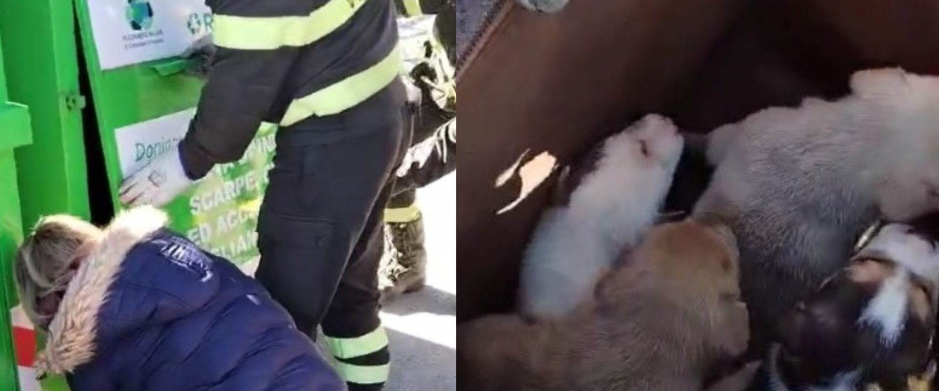 Maltrattamenti sugli animali a Palermo, cuccioli buttati nel bidone degli indumenti usati: il VIDEO