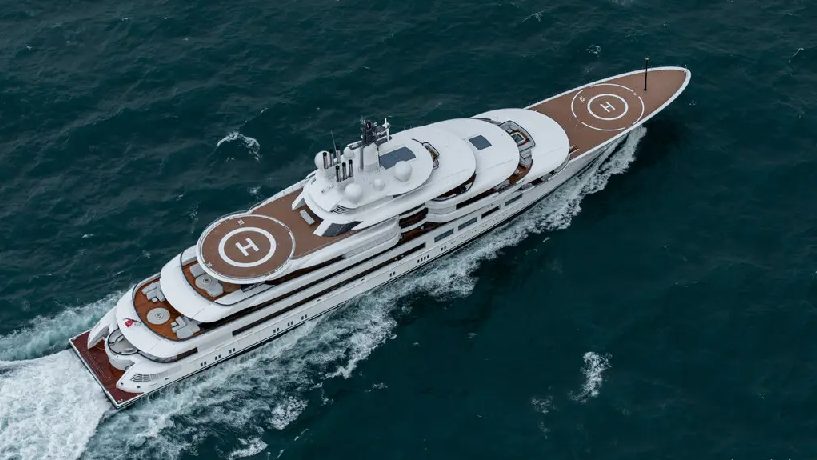 Di chi è il super-yacht da 140 metri ancorato nel porto di Marina di Carrara? Ha due ponti per elicotteri, impianti satellitari, piscina, palestra e infissi dorati