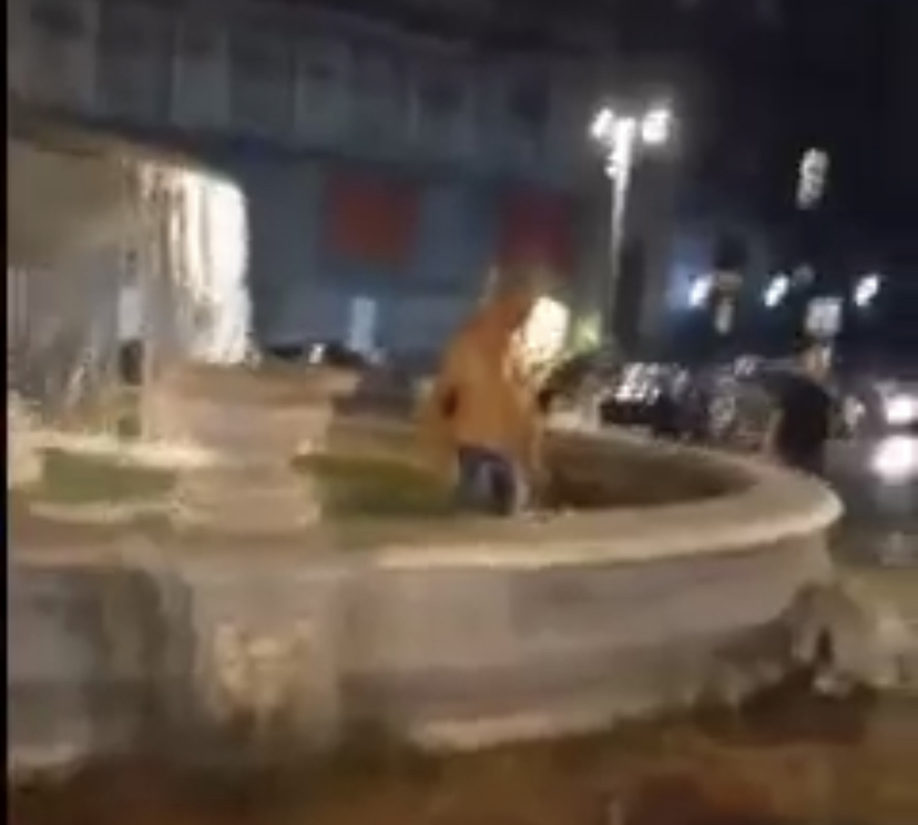 Napoli, turista fa il bagno nella fontana del centro: il video è virale