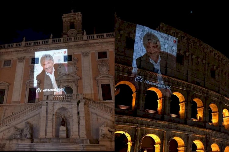 L’omaggio di Roma all’attore Gigi Proietti: la foto proiettata su Campidoglio e Colosseo