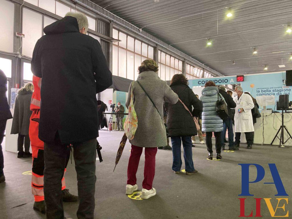 Lunghe code fin dal mattino nel viale principale della Fiera. Le vaccinazioni senza prenotazione, nell’ambito dell’open weekend, si effettuano dalle 8 alle 22, orario di chiusura dei cancelli. Fino a mezzanotte, invece, ma entrando al massimo entro le 22, andranno avanti le vaccinazioni di tutti coloro che, a prescindere dall’open weekend, si erano già prenotati in precedenza.
