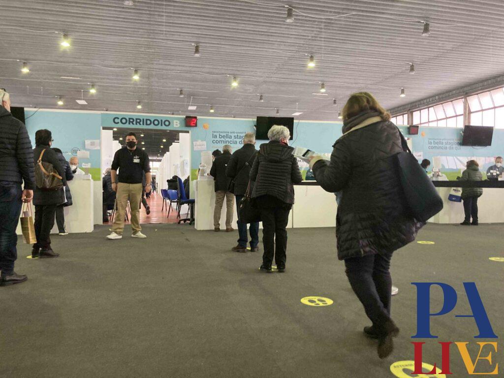 Due su cinque i corridoi dell’hub destinati ai vaccinandi con AstraZeneca; negli altri tre sono andate avanti regolarmente le inoculazioni di siero anti-Covid Pfizer ai cittadini ultraottantenni o estremamente vulnerabili.