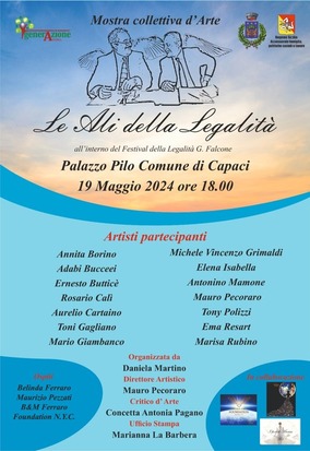 “Le Ali della Legalità” è il titolo della collettiva d’arte in programma a Capaci domenica 19 maggio, all’interno del “Festival della Legalità – Arte musica e cultura” organizzato dall’associazione socio-artistico-culturale “Generazione Attiva”.