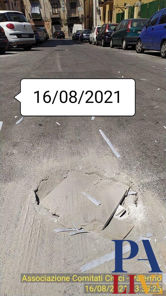 Facciamo seguito alla corrispondenza intercorsa sull’argomento in oggetto per segnalare che la voragine si sta riformando a distanza di pochi giorni dalla riparazione. Quella di 16 c.m. ricoperta con mattone dai residenti. Un’altra di 23 c.m. ricoperta in modo approssimativo con il solito sacchetto di bitume, e infine 25 c.m. eccola riformarsi. Questa insidia è pericolosa per tutti coloro che transitano da quel luogo. Per evitare ulteriori sprechi di denaro con interventi approssimativi e non professionali, vi chiediamo che siano ripristinate le condizioni di sicurezza della strada in questione, facendo certificare la corretta esecuzione del lavoro, come previsto dai vigenti norme in materia di lavori pubblici.” Un vero e proprio grido d’aiuto, volto a scongiurare il peggio. Una legittima richiesta che, a Palermo, si rischia non venga mai ascoltata.