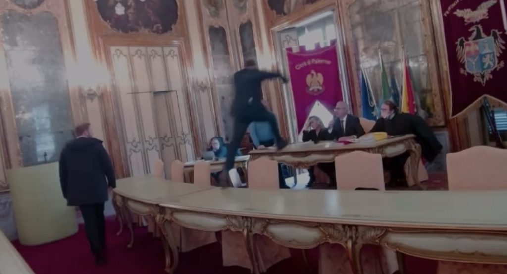 Palermo, caos in Consiglio Comunale: Milazzo salta sul banco e si scaglia contro il presidente in pectore – VIDEO