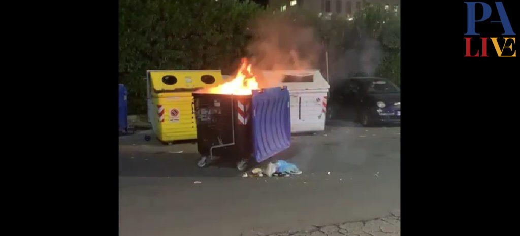 Palermo, cassonetto in fiamme nella carreggiata: pericolo per i veicoli – VIDEO