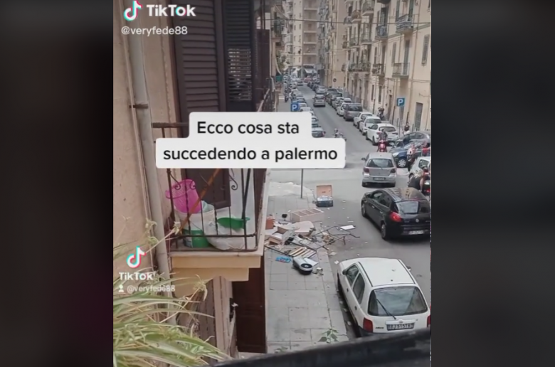 Palermo, donna lancia oggetti dal balcone: “Ha tirato anche il gatto” | VIDEO