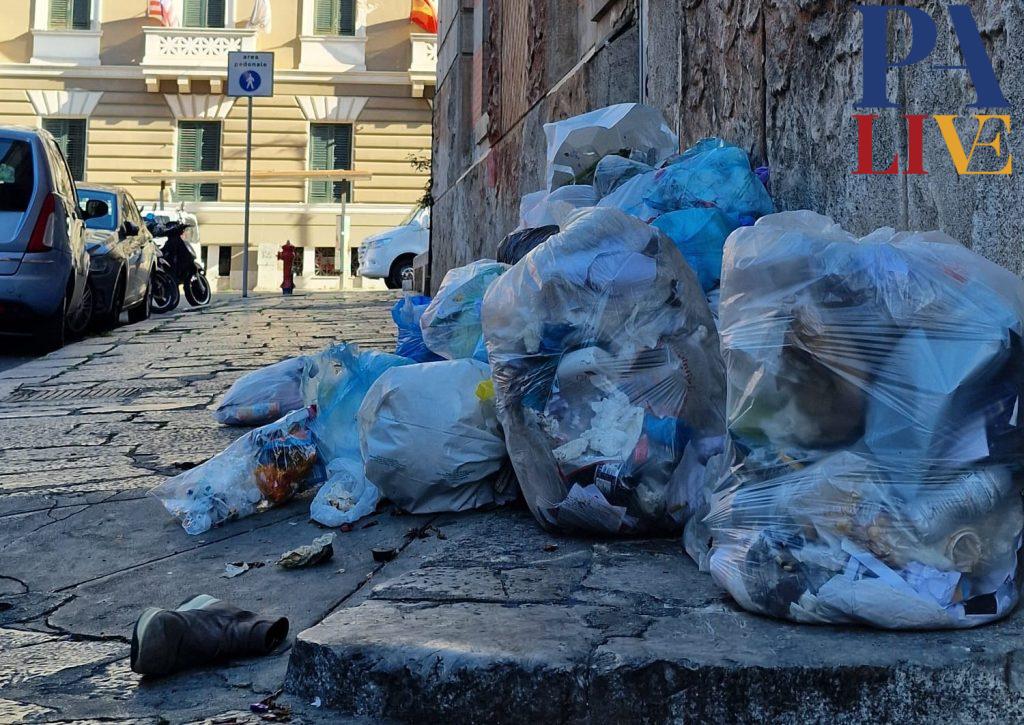 Un triste biglietto da visita quello che si presenta al centro storico della città. Un mucchio di rifiuti maleodorante addossato alle spalle del Teatro Politeama, uno dei maggiori prestigiosi monumenti di Palermo.