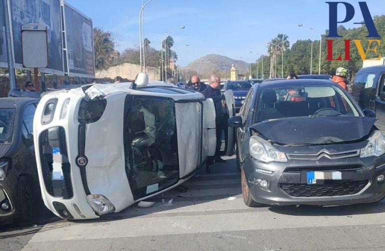 Palermo, incidente in Viale del Fante: auto si ribalta sull’asfalto