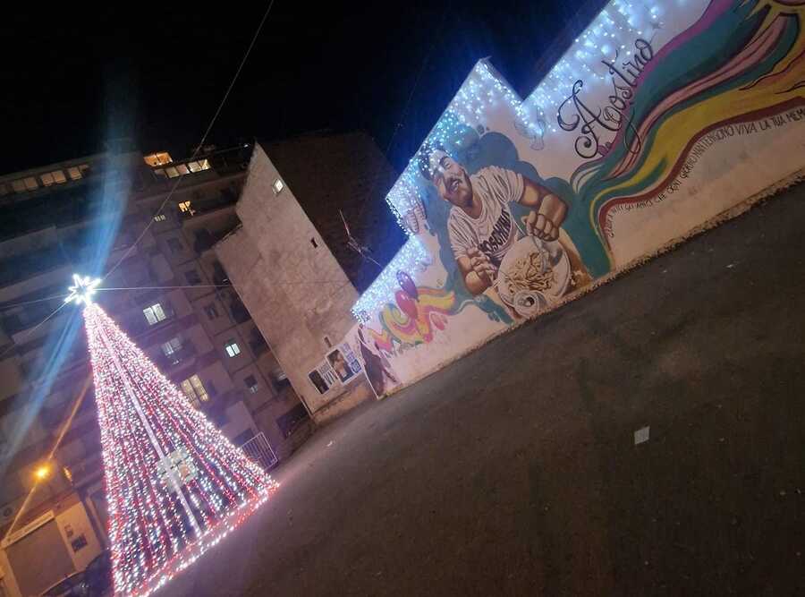 Anche questo Natale, la piazzetta dedicata alla memoria di Agostino Cardovino ha il suo albero di Natale. Come ogni anno da quando il giovane è deceduto, nel giugno 2020, la famiglia ha voluto simbolicamente sistemare l’albero in piazzetta e accendere così una parte del quartiere, anche in segno di speranza per tutti coloro che soffrono per una grave perdita ed in ricordo del giovane del quartiere Noce che amava le festività e tutto ciò che essere portano con sé: le riunioni familiari, i grandi pranzi, stare insieme e condividere momenti di spensieratezza.