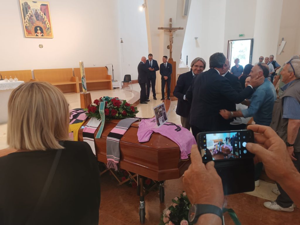 Il feretro dell’ex calciatore è uscito fra gli applausi di amici e semplici tifosi, appassionati, che ricordano le gesta del bomber Tanino.