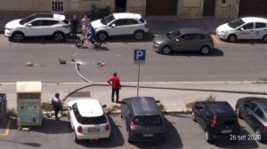 Complici le forti raffiche di vento, che fanno ballonzolare all'impazzata tanti oggetti che compongono l'arredo urbano della città, verso l'una...