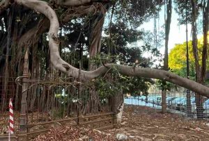 Caduto giù all'improvviso, al centro di piazza Marina, un pezzo della storia cittadina di Palermo. Un grande ramo del Ficus macrophylla...