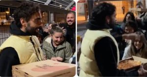 Marco Mengoni porta le pizze ai suoi fan in attesa del concerto| VIDEO