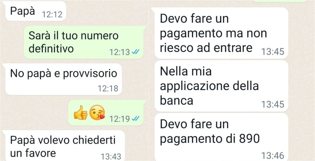 “Papà devo chiederti un favore”: i messaggi-truffa