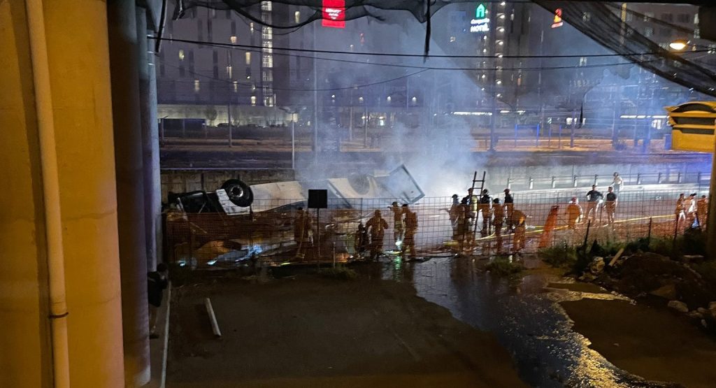 Secondo le prime indiscrezioni, il pullman di linea sarebbe precipitato dal cavalcavia per un’altezza di almeno 15 metri, finendo sui dei cavi elettrici causando un incendio.