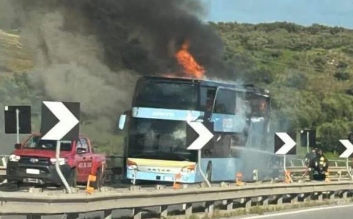 Paura sull’A29 Palermo-Mazara, pullman avvolto dalle fiamme: traffico in tilt