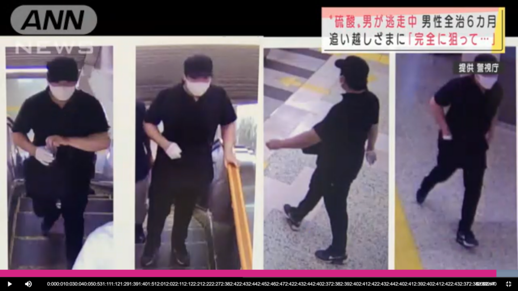 Ricerche in corso nei pressi della metropolitana di Tokyo, dove un uomo si è introdotto ed ha lanciato acido solforico su alcuni passanti. Due persone hanno subito ustioni. Un uomo di 22 anni è stato colpito al volto dall’acido su una scala mobile della stazione di Shirokane-Takanawa, mentre una donna di 34 è rimasta leggermente ustionata alle gambe.