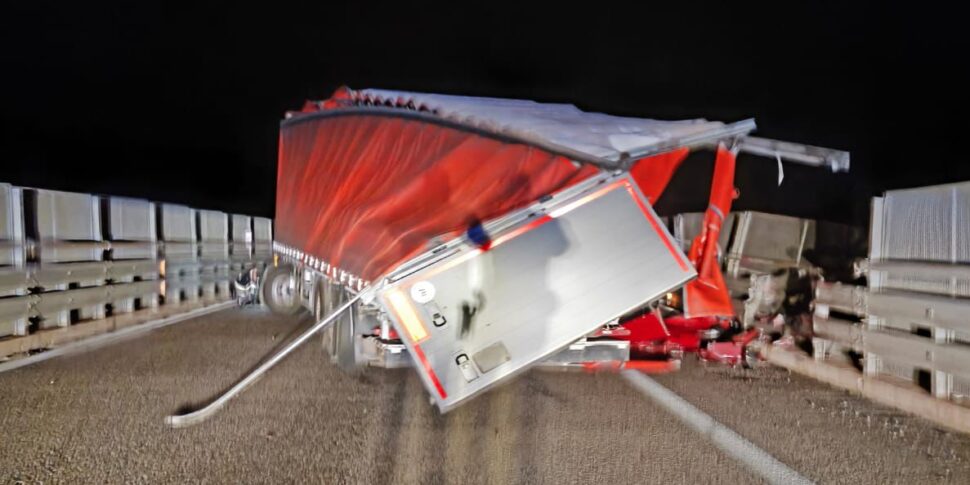 Paura questa notte sull’autostrada A20, Messina Palermo, all’altezza di Acquedolci. Un tir si è ribaltato sull’asfalto a causa del forte vento.
