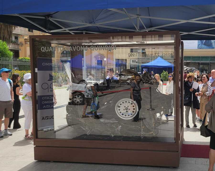 Da questa mattina davanti il teatro Politeama di Palermo è esposta la teca dell’auto della scorta di Giovanni Falcone, la Quarto Savona 15, rimasta coinvolta nella strage di Capaci. In tanti tra palermitani e turisti incuriositi si sono avvicinati nella struttura di vetro dove si trovano i resti dell’auto saltata in aria nell’attentato del 1992.
