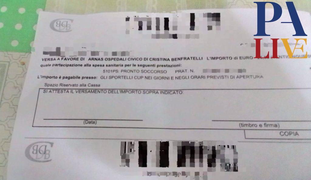 25 euro. E’ questo il prezzo del ticket che un nostro lettore ha dovuto pagare giunto al Pronto Soccorso dell’Ospedale Civico di Palermo in codice verde. L’uomo, come segnalato alla nostra redazione, ha accompagnato la propria moglie.