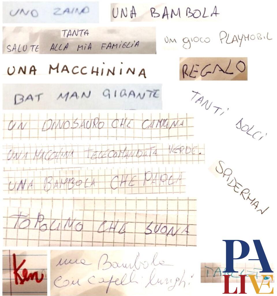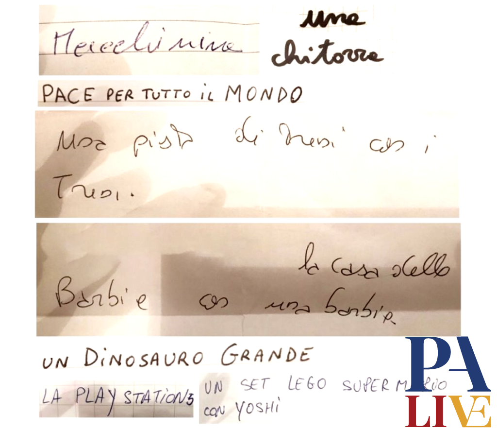 Nei giorni scorsi, i bambini meno fortunati hanno scritto una letterina per Babbo Natale in cui hanno espresso dei piccoli desideri. Per contribuire è sufficiente realizzare uno di questi desideri.