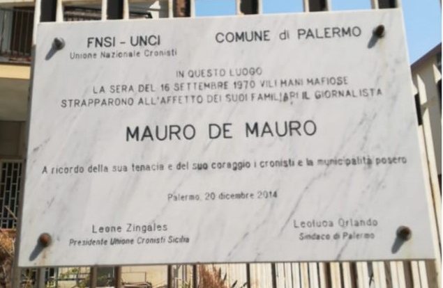 Nel maggio scorso, il consigliere comunale Natale Puma aveva evidenziato lo stato di degrado della targa commemorativa che ricorda l’impegno del giornalista Mauro De Mauro, ucciso dalla mafia il 16 settembre del 1970 .