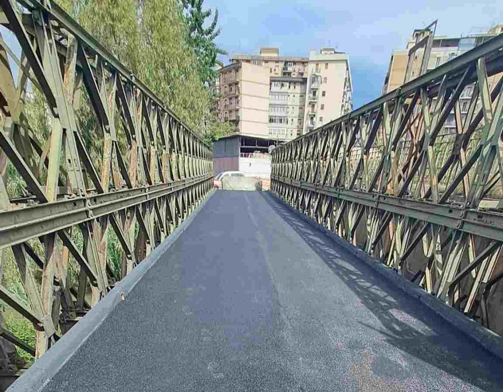Sono stati completati stamattina i lavori di manutenzione straordinaria per il rifacimento del manto stradale, del tavolato e serraggio bullonerie del Ponte Bailey di via Guadagna, che consente l’attraversamento del fiume Oreto. Il cantiere era stato avviato mercoledì 16 aprile e ha risposto all’annosa esigenza legata allo stato di ammaloramento della pavimentazione stradale, la quale presentava numerose deformazioni, e allo stato di usura del tavolato in legno, caratteristica di questo tipo di ponti militari.