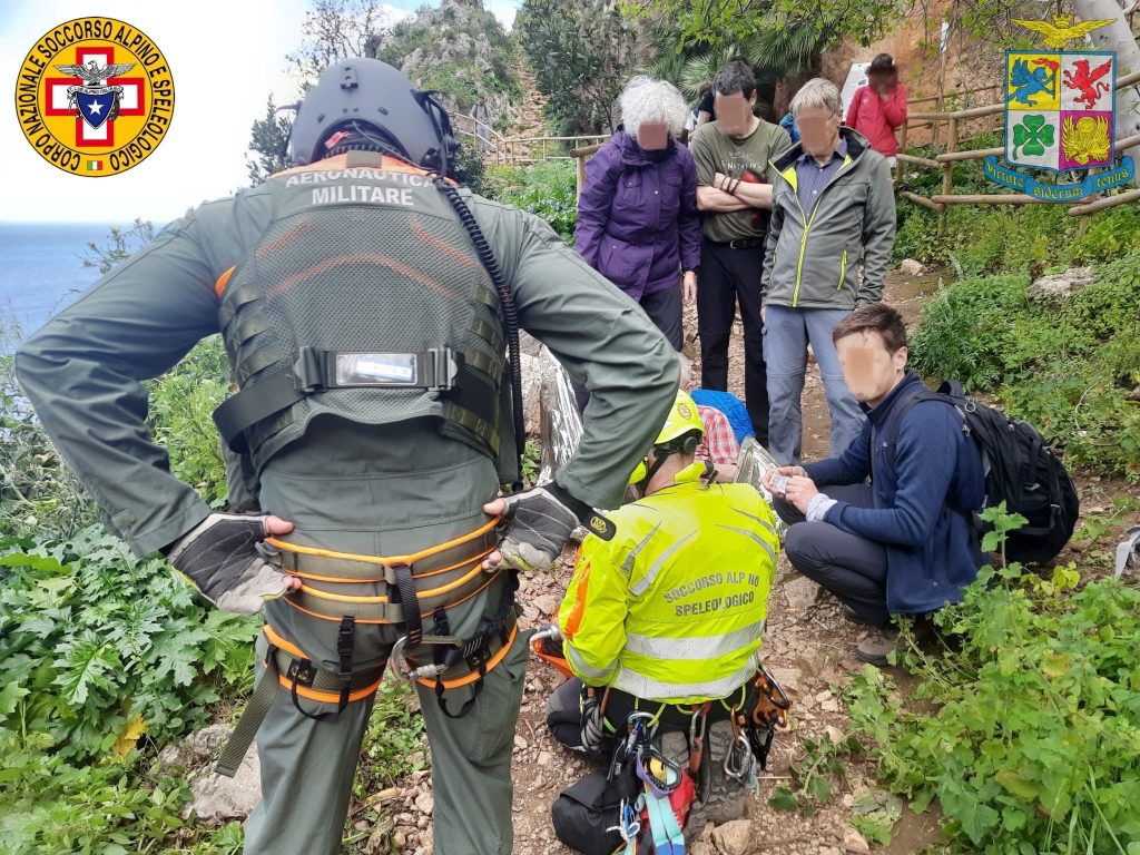 Soccorso Alpino e Speleologico Siciliano e 82° Csar dell’Aeronautica Militare in azione nella Riserva naturale orientata dello Zingaro per un turista tedesco che si era infortunato nei pressi di Cala dell’Uzzo.