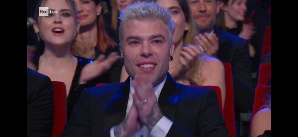 Iniziata la finale del Festival di Sanremo 2023. Chiara Ferragni, co-conduttrice dell’ultima serata, scende le scale dell’Ariston. In prima fila, il marito e cantante Fedez visibilmente emozionato.