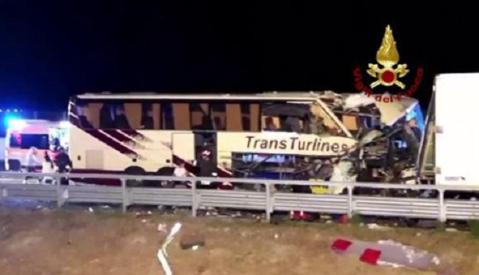 Un pullman adibito a pubblico servizio con a bordo turisti ucraini e un camion frigo polacco, che trasportava frutta e verdura, si sono scontrati sull’autostrada A4. Secondo le prime informazioni del Centro operativo autostradale di Palmanova (Udine), ci sarebbero molti feriti ma nessuna vittima. Luca Cari, portavoce dei vigili del fuoco, ha detto ieri sera al Tg2. “La situazione è grave, due feriti gravi sono stati trasportati in elicottero in ospedale e stiamo lavorando per togliere altre persone dalle lamiere”. Infatti, una mezza dozzina di viaggiatori del pullman, tra cui l’autista e almeno un bambino, è rimasta imprigionata nelle lamiere contorte del bus. L’incidente, che secondo Cari sembra un tamponamento, si è verificato nel prima serata di ieri 25 agosto, nel tratto a tre corsie dell’autostrada tra Latisana e San Giorgio di Nogaro in direzione Trieste.