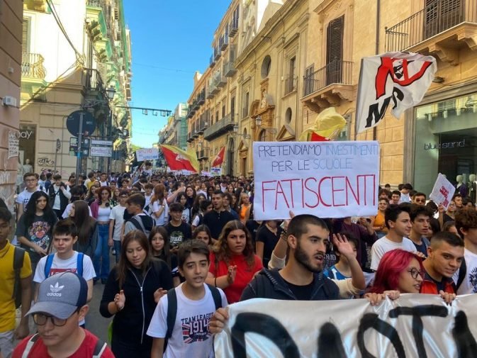 “Basta scuole fatiscenti”. Con questo ‘grido’ impresso in uno striscione, oltre mille studenti palermitani si sono riversati questa mattina per le strade della città