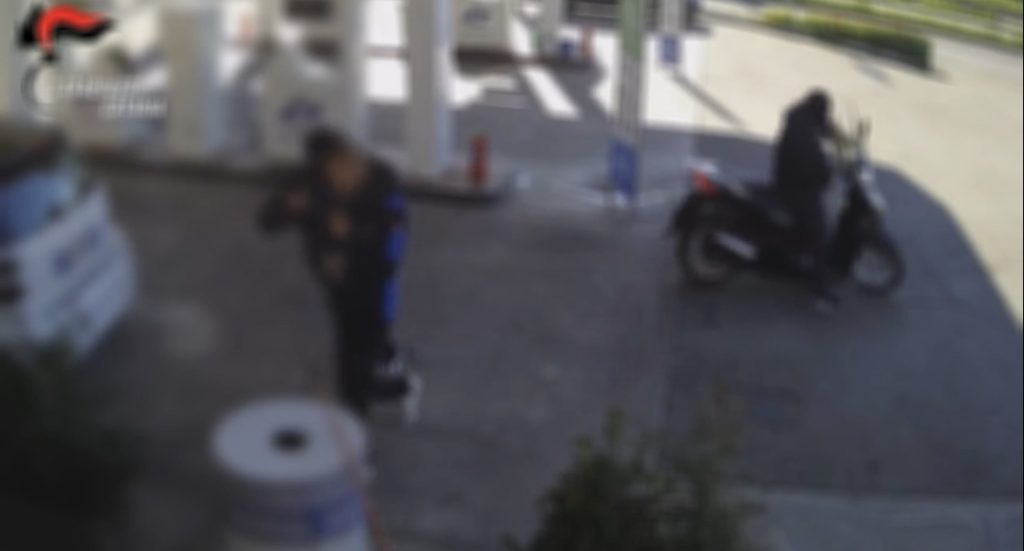 Secondo quanto ricostruito, i malviventi, con cappucci e passamontagna, intorno alle 13 sarebbero giunti nei pressi del rifornimento a bordo del motociclo con la targa oscurata. Alla guida del mezzo vi sarebbe stato Spitaleri. Il passeggero, dopo aver estratto una pistola, verosimilmente una calibro 9 x 21, avrebbe minacciato un dipendente facendosi consegnare l’incasso dell’ntero fine settimana di Capodanno, calcolato in oltre 9.000 euro, pronunciando la frase “se chiami i Carabinieri ti ammazziamo la famiglia” e tentando anche di colpire con il calcio dell’arma il commesso. La coppia, compiuta la rapina in due minuti, utilizzando lo stesso ciclomotore si sarebbe quindi immediatamente data alla fuga per le vie limitrofe.