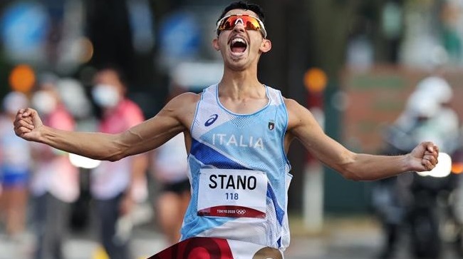 Massimo Stano è il sesto campione olimpico italiano della storia nella marcia, il terzo nella 20 chilometri. Nella distanza più corta della specialità del ‘tacco-punta’ il primo oro olimpico era stato nel 1980 a Mosca, vinto da Maurizio Damiliano dominatore assoluto della prova svoltasi lungo le rive della Moscova. Nel 2004 in un circuito nei pressi dello stadio Olimpico di Atene a firmare il trionfo azzurro era stato Ivano Brugnetti. Nella 50 km, la storica distanza della marcia che nei prossimi anni uscirà sia dal programma delle Olimpiadi che dei Mondiali, il primo italiano campione olimpico era stato Giuseppe ‘Pino’ Dordoni nella 50 km a Helsinki. Ai Giochi di Tokyo nel 1964, sotto la pioggia, vittoria per Abdon Pamich e nel 2008 a Pechino, Alex Schwazer.