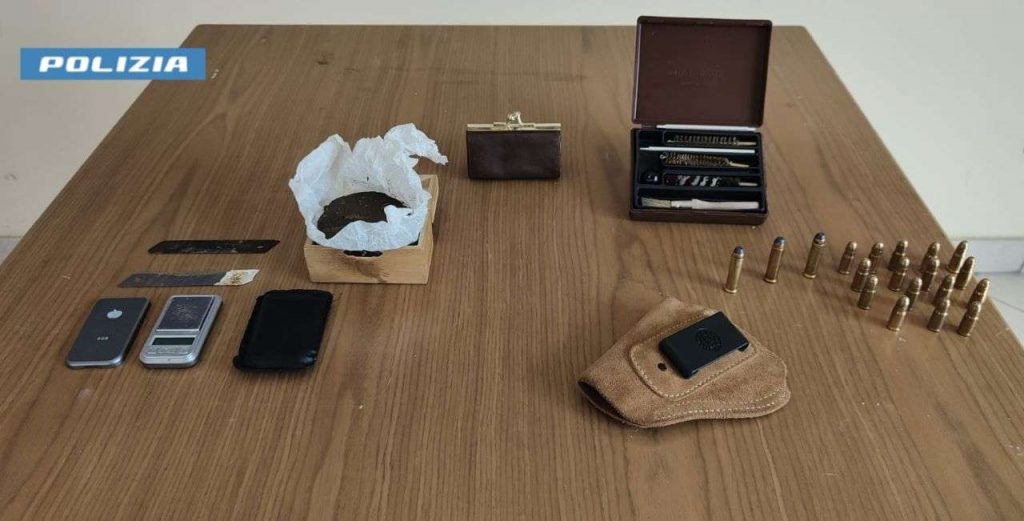Il 4 maggio gli agenti sono giunti all’interno di un’abitazione nei pressi di via Patti dove si sospettava potessero essere detenute armi non regolarmente denunciate. I sospetti si sono rivelati fondati: in camera da letto, tra gli indumenti nel ripiano di un armadio, è stato rinvenuto un sacchetto di plastica contenete due involucri in carta ognuno con 19 proiettili (3 del tipo 357 magnum e 16 del tipo cal. 7.65 Parabellum). Presente anche un panetto di sostanza stupefacente verosimilmente del tipo hashish del peso di circa 50 grammi e altri piccoli frammenti della medesima sostanza. C’era anche un bilancino di precisione e altro materiale atto al confezionamento.