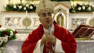 Monsignor Antonio Staglianò, vescovo di Noto, al termine del festival delle "Arti Effimere", tenutosi nella basilica del SS. Salvatore, si...