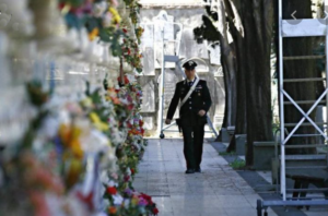 Mentre gli addetti stavano procedendo alla sepoltura di un defunto, probabilmente a causa di un guasto improvviso durante il sollevamento,...
