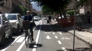 Via Principe di Villafranca, trasformata in un imbuto dalla pista cicliabile (a doppio senso di marcia!) e dalle zone blu...