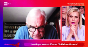 Il comico Gene Gnocchi, in collegamento da Faenza con la trasmissione "Citofonare Rai Due", condotta da Simona Ventura e Paola...