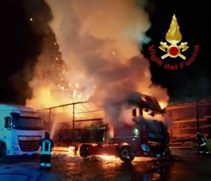 Diverse ore di intenso lavoro, questa notte, per i vigili del fuoco di Palermo. All'interno di un azienda di autotrasporti...