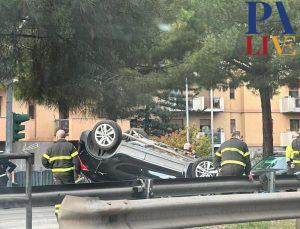 Incidente stradale a Palermo. Un'auto, una minicar, si è cappottata sull'asfalto nei pressi di Villa Adriana, zona viale Strasburgo. Sul...