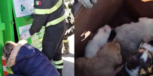 Quattro cuccioli di cane sono stati abbandonati all'interno di un contenitore per la raccolta di indumenti usati nella zona di...