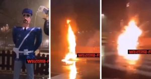 A Capodanno bruciano il manichino di un poliziotto ed esultano – VIDEO –