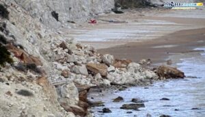 Una frana a ridosso della Scala dei Turchi lungo la costa di Realmonte in provincia di Agrigento. Un evento non...