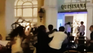 Mega rissa davanti all’albergo dei vip: volano sedie e pugni | VIDEO