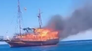 Imbarcazione di turisti avvolta dalle fiamme, scene di panico a Rodi – VIDEO