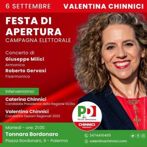 La candidata alla presidenza della Regione Siciliana Caterina Chinnici interverrà all’evento di apertura della campagna elettorale di Valentina Chinnici, candidata...