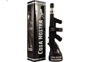 Una bottiglia a forma di mitra: il “Wisky Cosa Nostra” chocca l’Emilia
