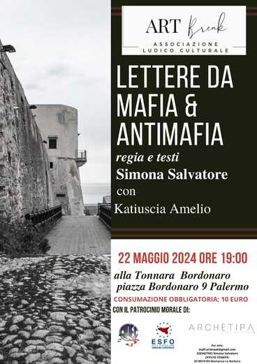 Tutto pronto per lo spettacolo “Lettere da Mafia e Antimafia” in programma a Palermo mercoledì 22 maggio alle 19:00 negli spazi della Tonnara Bordonaro, al civico 9 dell’omonima piazza.