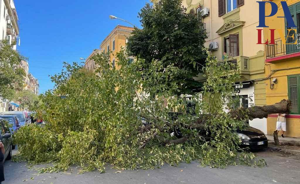 Tragedia sfiorata in via Costantino Lascaris, nei presso del Tribunale di Palermo, dove un grosso albero si è spezzato cadendo rovinosamente su un’auto parcheggiata.